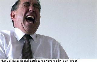 Surely the ‘aesthetic moments’ are aroused by their contrived and conceited nature? All ‘real’ and ‘authentic’ art must be artificial, it must be seen as obviously planned that is how one enjoys the ‘craft’ of the artist. Trickery is involved, no doubt, a certain trompe l’oeil, which becomes evident in the piece The Two Teams Team, a short film where two actors take a break on set and discuss the merits of video art and the movies. Are these unguarded moments we are witnessing? The film begins and ends with the director saying ‘cut’ and the scene opening to reveal a working set. We are left questioning ‘truth and reality’, but any astute observer will understand the artificial hand of the artist, Manuel Saiz, subtly directing the film revealing the onion-like layers of meaning and interpretation, all very considered. And that’s it: this ‘made-up’ element is essential to defining what art is.